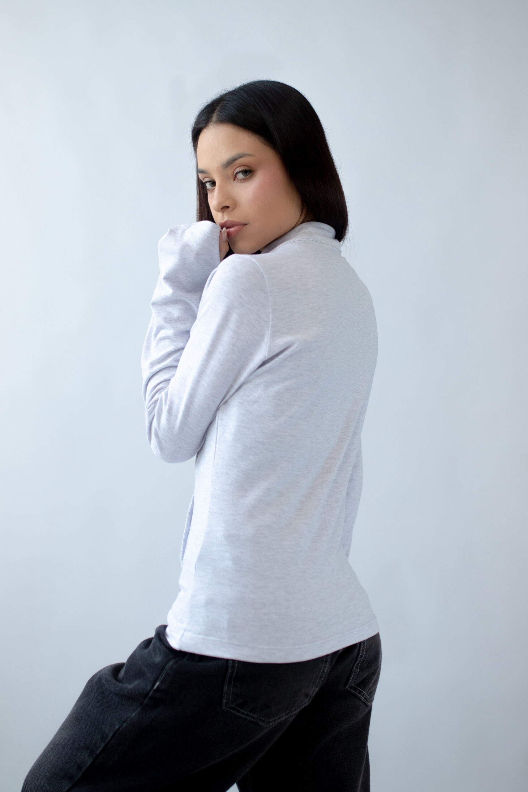 Chaqueta en tela full licra de ajuste ceñido, lleva cierre y bolsillos en el delantero