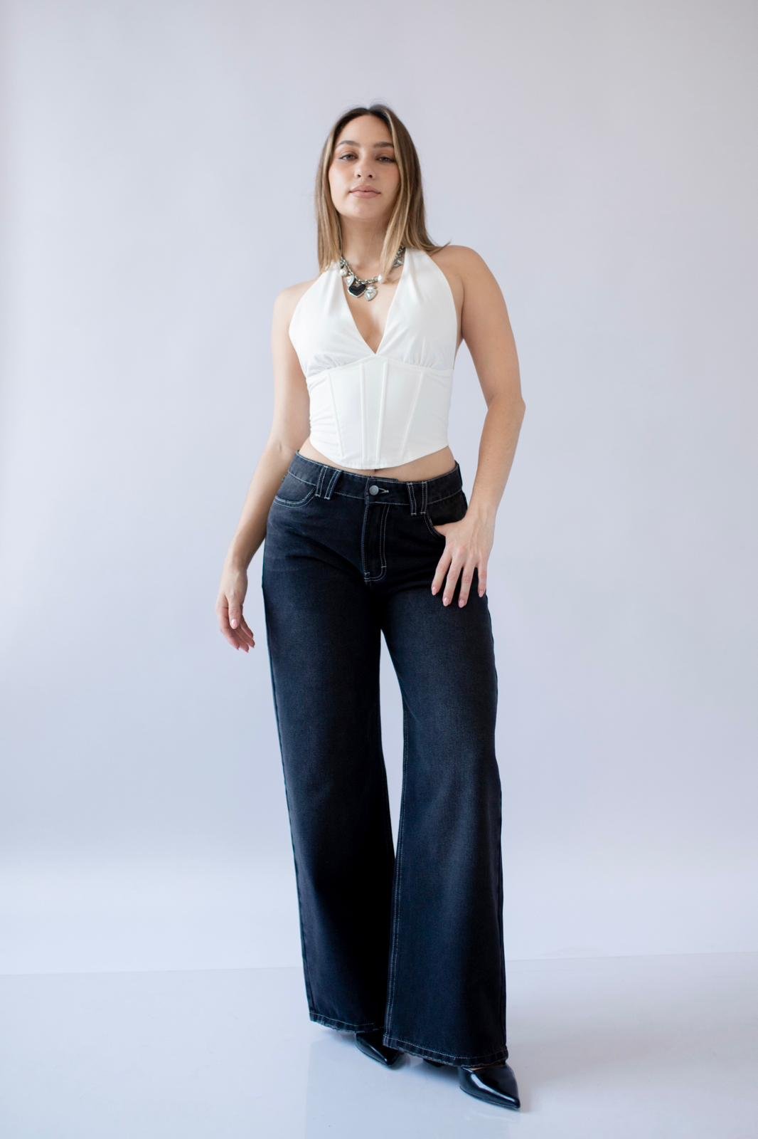 Top asimétrico estilo halter strap, lleva pitas en la espalda para un ajuste perfecto y entallado al cuerpo